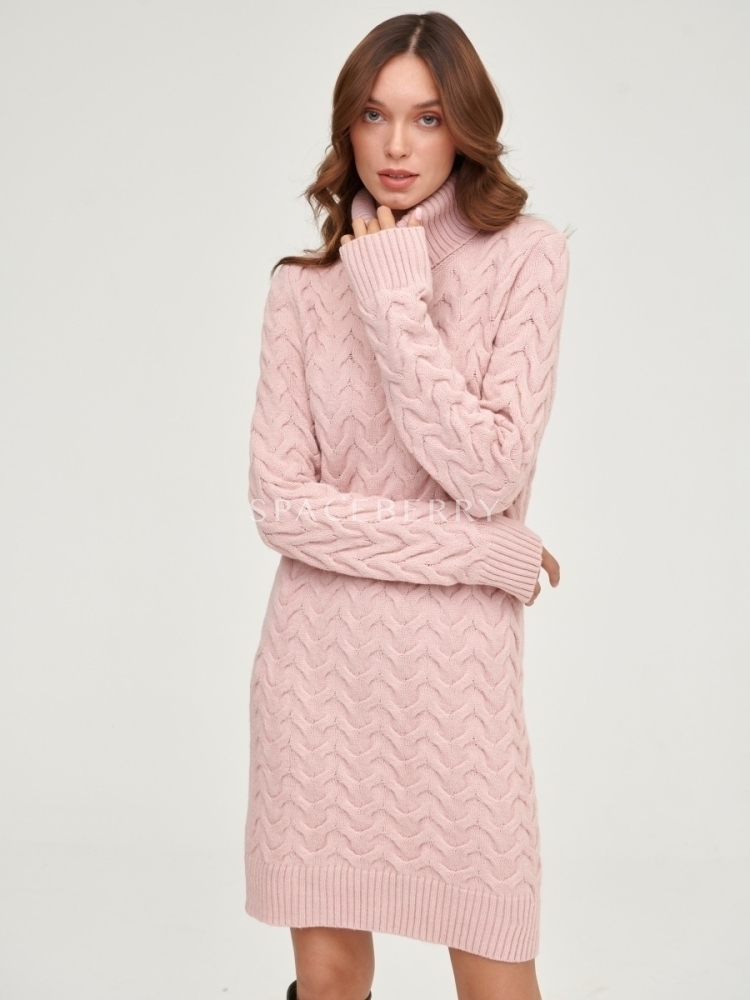 Женское теплое вечернее вязаное платье (пудровый) в Зеленокумске